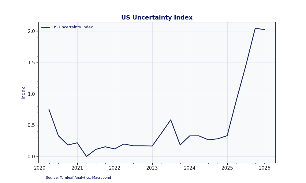 Over the past year, Turnleaf has accounted for volatility in tariffs and geopolitical risk by tracking alternative data that includes measures of global macroeconomic volatility, commodity indices, and expectations data. The patterns we’ve observed reveal several key transmission mechanisms that will define 2026.