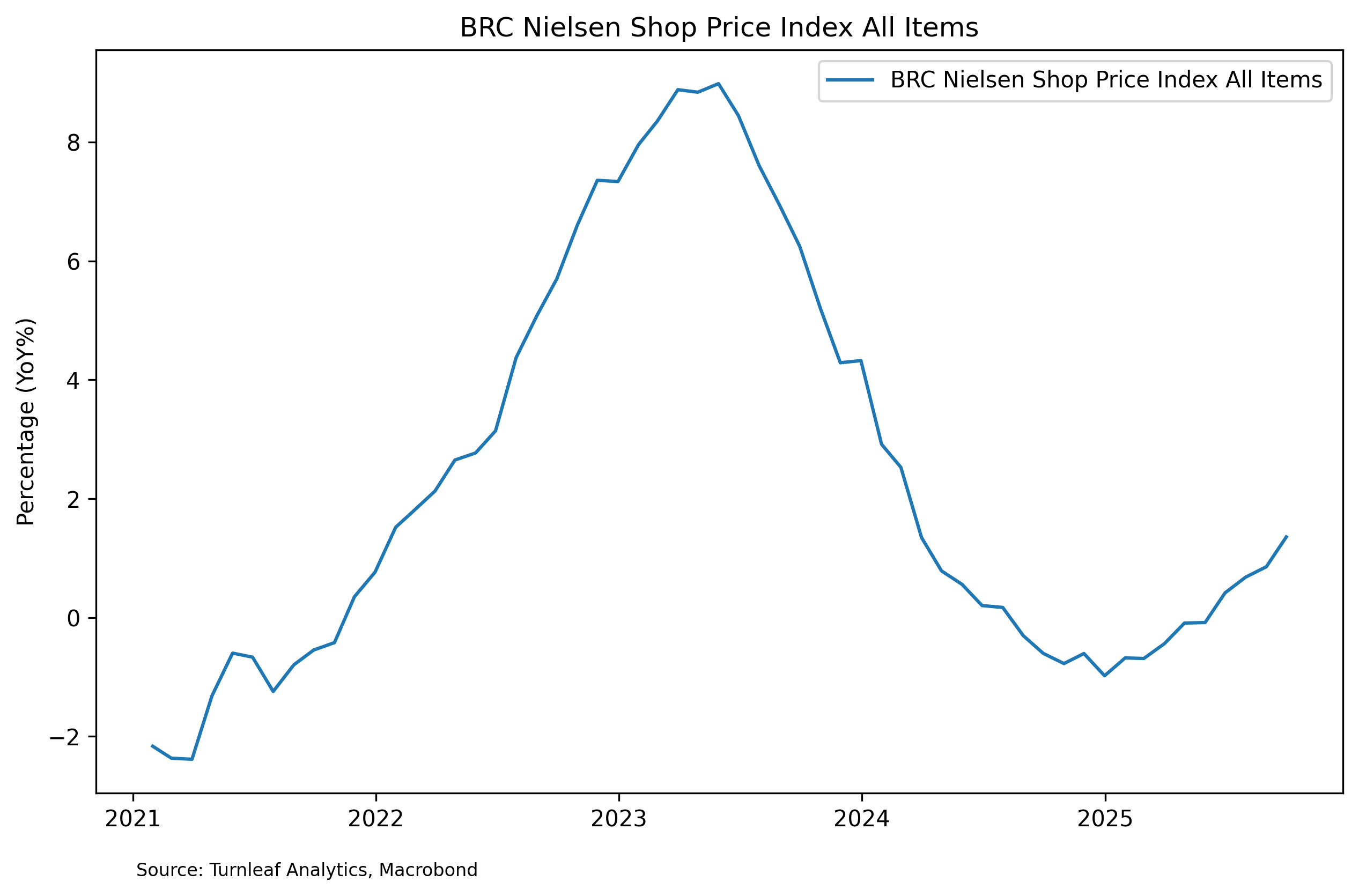 Other broad factors are consistent with an inflationary retail backdrop. The Nielsen Shop Price Index rose to 1.4%YoY in September 2025 from 0.9% in August 2025, which signals firmer retail pricing momentum and aligns with the persistent food inflation observed throughout the year (Figure 2). This development suggests that food prices are likely to have increased in September 2025 as well.
