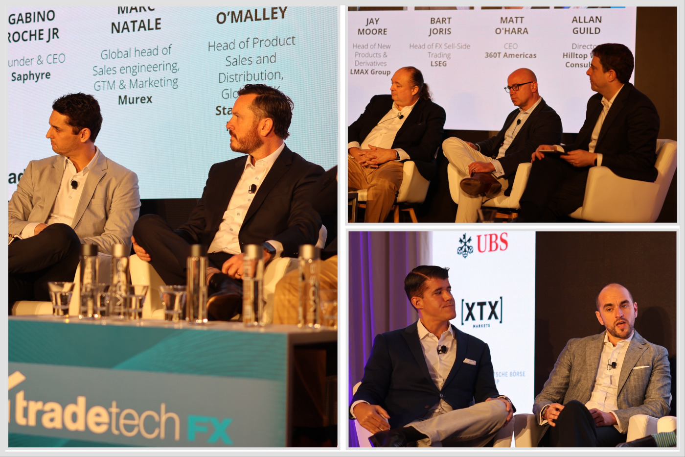 Michael O’Malley (State Street), Jay Moore (LMAX), Bart Joris (LSEG), Matt O’Hara (360T), Allan Guild (Hilltop Walk Consulting), Marc Natale (Murex) and Gabino Roche Jr (Saphyne)